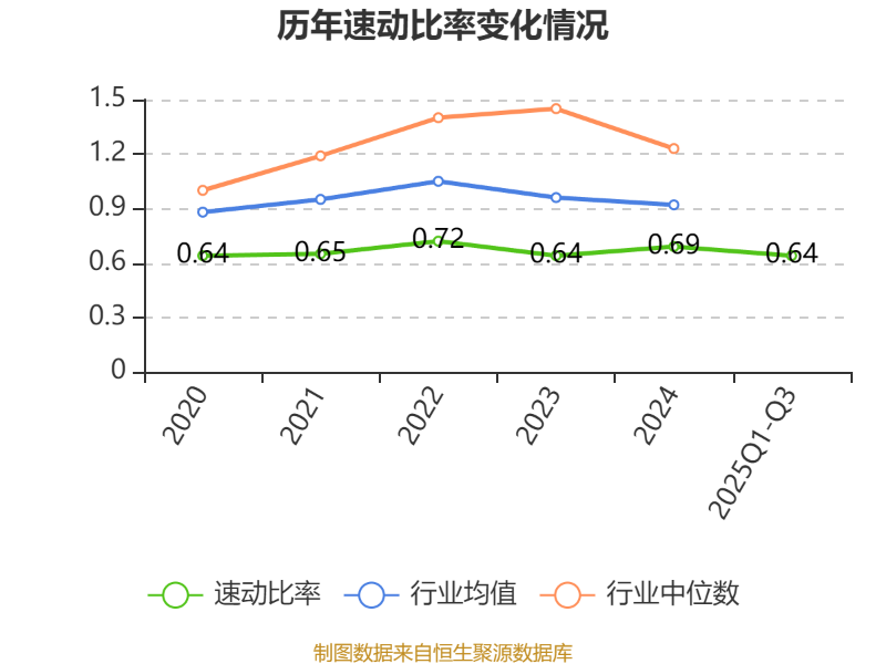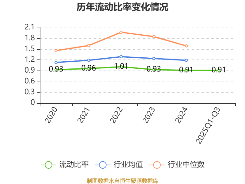 2025年前三季度,公司流动比率为0.91,速动比率为0.64。