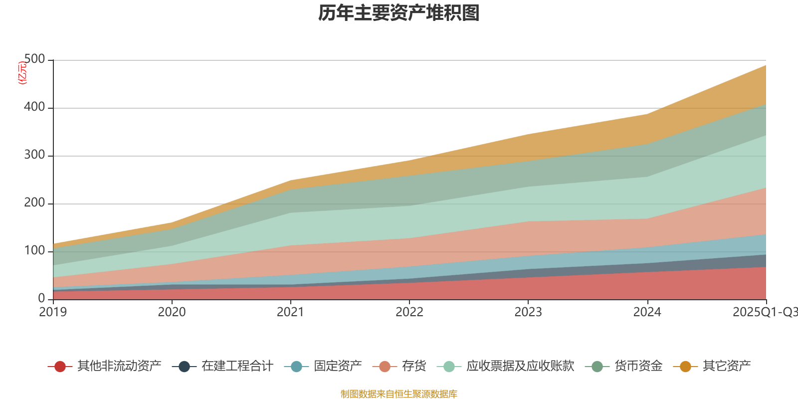 资产重大变化方面,截至2025年三季度末,公司存货较上年末增加62.54%,占公司总资产比重上升4.43个百分点;货币资金较上年末减少4.6%,占公司总资产比重下降4.34个百分点;应收款项融资较上年末增加138.81%,占公司总资产比重上升0.91个百分点;其他非流动资产较上年末增加18.86%,占公司总资产比重下降0.88个百分点。