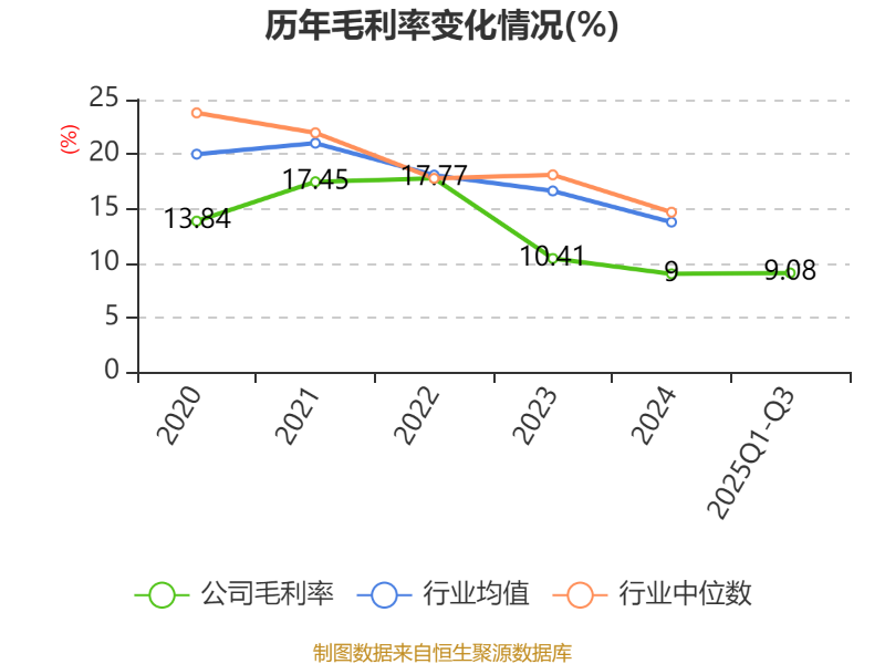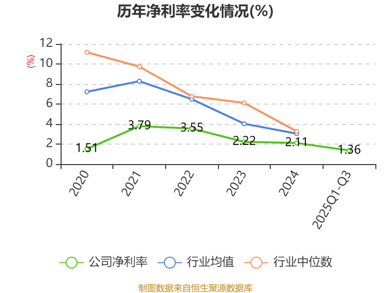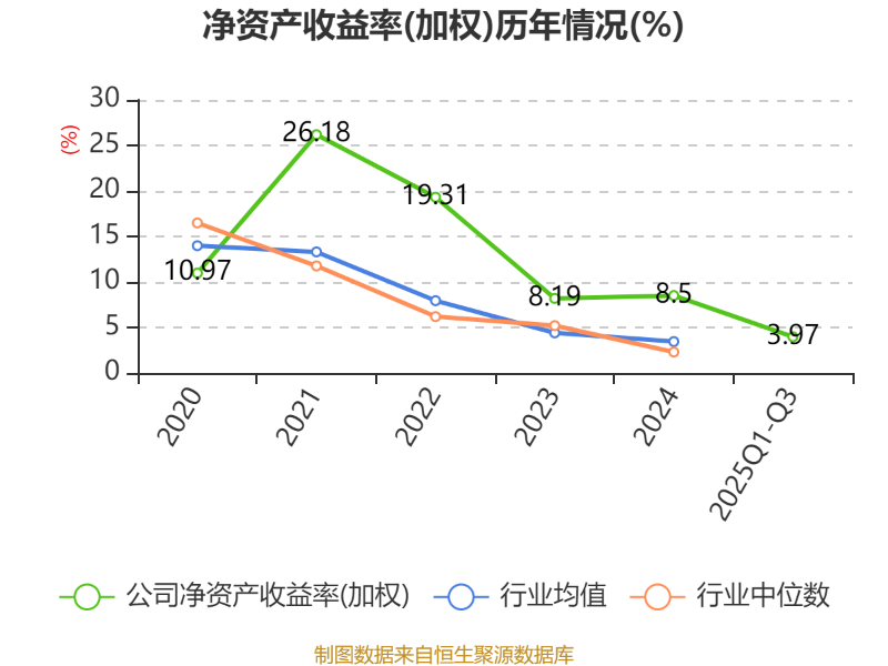 盈利能力方面, 2025年前三季度公司加权平均净资产收益率为3.97%,同比下降0.99个百分点。公司2025年前三季度投入资本回报率为2.29%,较上年同期下降0.8个百分点。