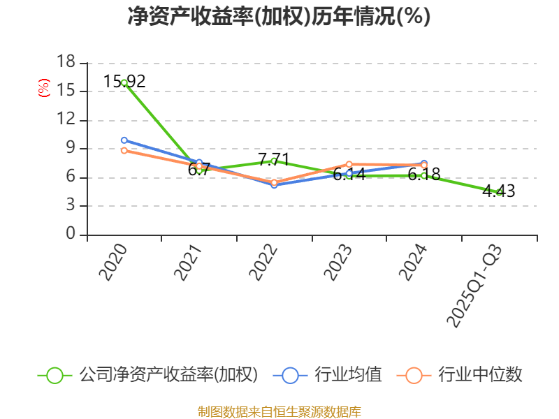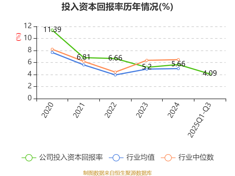 盈利能力方面, 2025年前三季度公司加权平均净资产收益率为4.43%,同比下降0.39个百分点。公司2025年前三季度投入资本回报率为4.09%,较上年同期上升0.01个百分点。