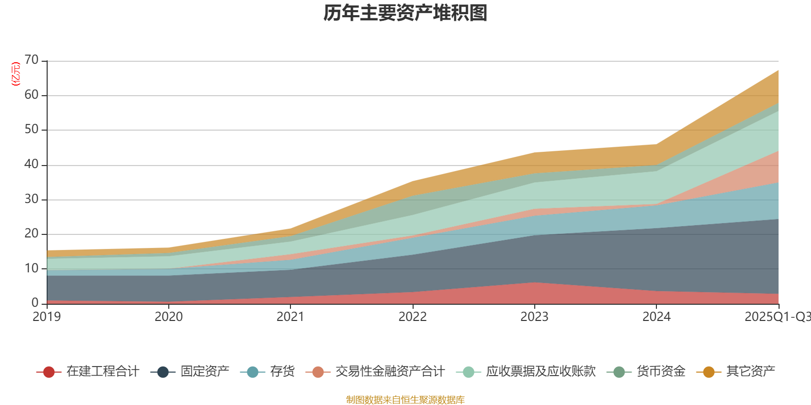 资产重大变化方面,截至2025年三季度末,公司交易性金融资产合计较上年末增加2025.49%,占公司总资产比重上升12.58个百分点;固定资产较上年末增加19.04%,占公司总资产比重下降7.38个百分点;在建工程合计较上年末减少22.11%,占公司总资产比重下降3.7个百分点;应收票据及应收账款较上年末增加21.74%,占公司总资产比重下降3.46个百分点。