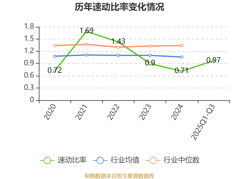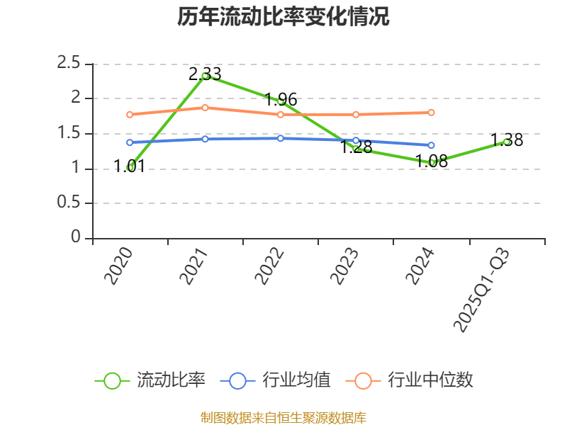 2025年前三季度,公司流动比率为1.38,速动比率为0.97。