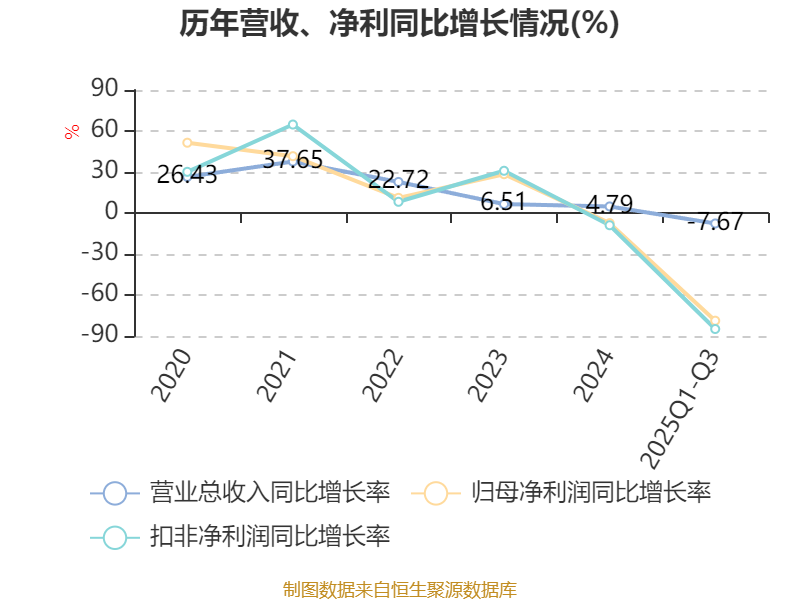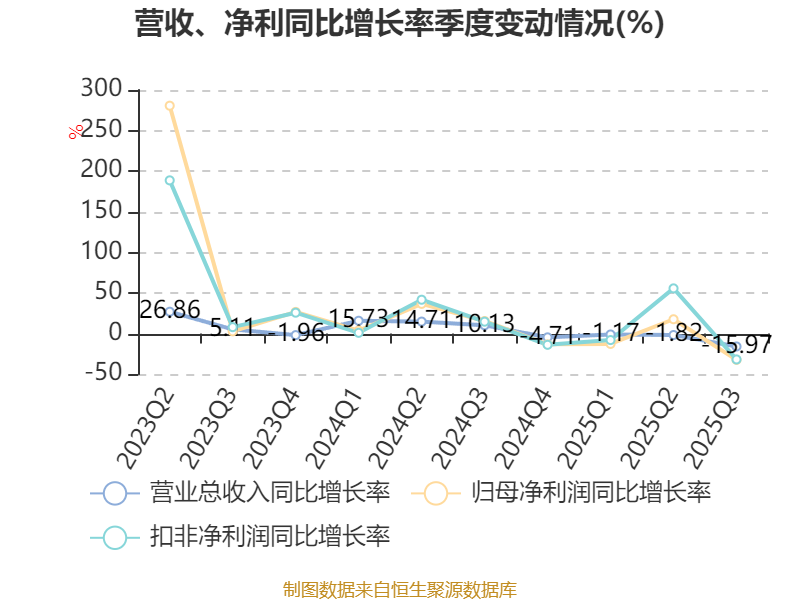 资产重大变化方面,截至2025年三季度末,公司货币资金较上年末减少34.23%,占公司总资产比重下降8.39个百分点;应收票据及应收账款较上年末增加19.25%,占公司总资产比重上升5.65个百分点;其他流动资产较上年末减少84.75%,占公司总资产比重下降4.55个百分点;固定资产较上年末增加26.21%,占公司总资产比重上升4.49个百分点。