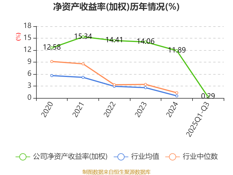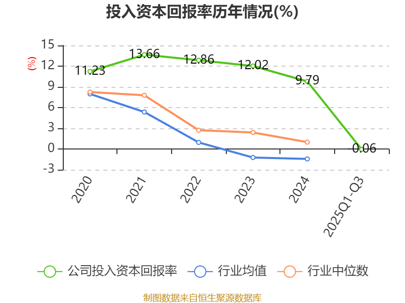 盈利能力方面, 2025年前三季度公司加权平均净资产收益率为0.29%,同比下降1.13个百分点。公司2025年前三季度投入资本回报率为-0.06%,较上年同期下降8.48个百分点。