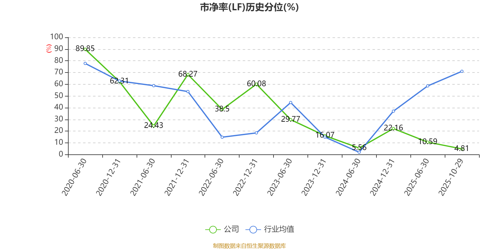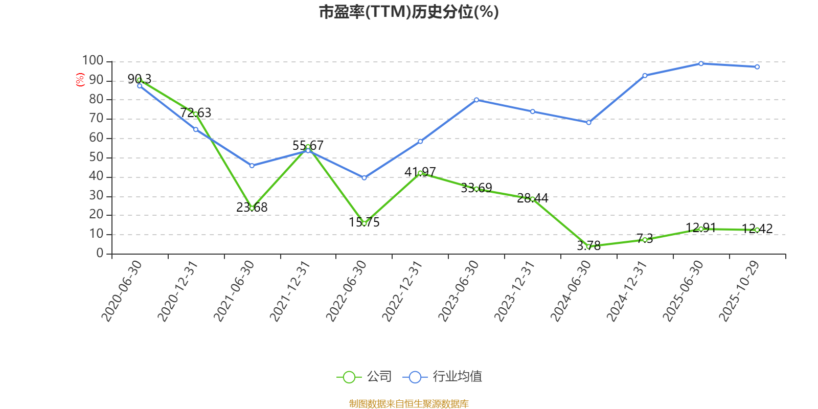 市盈率、市净率为负时,不显示当期分位数,会导致折线图中断。