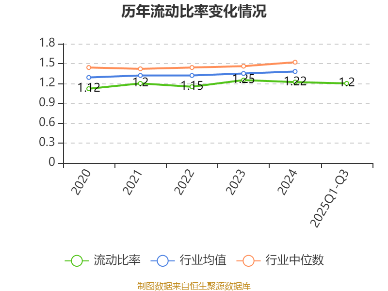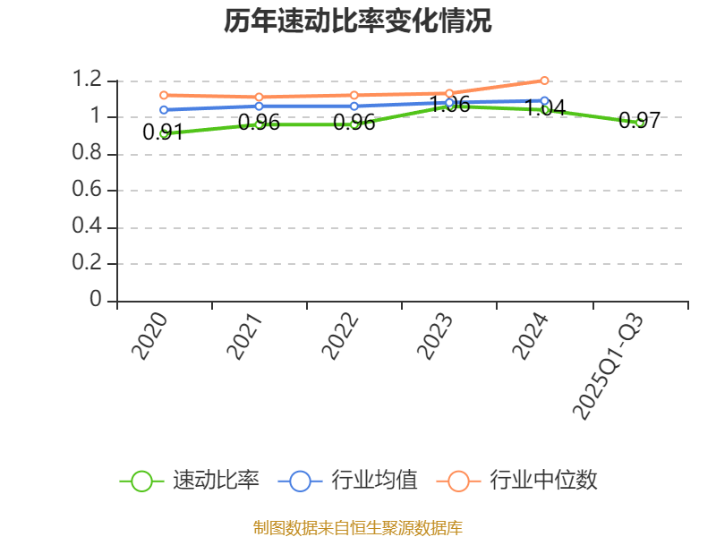 2025年前三季度,公司流动比率为1.2,速动比率为0.97。