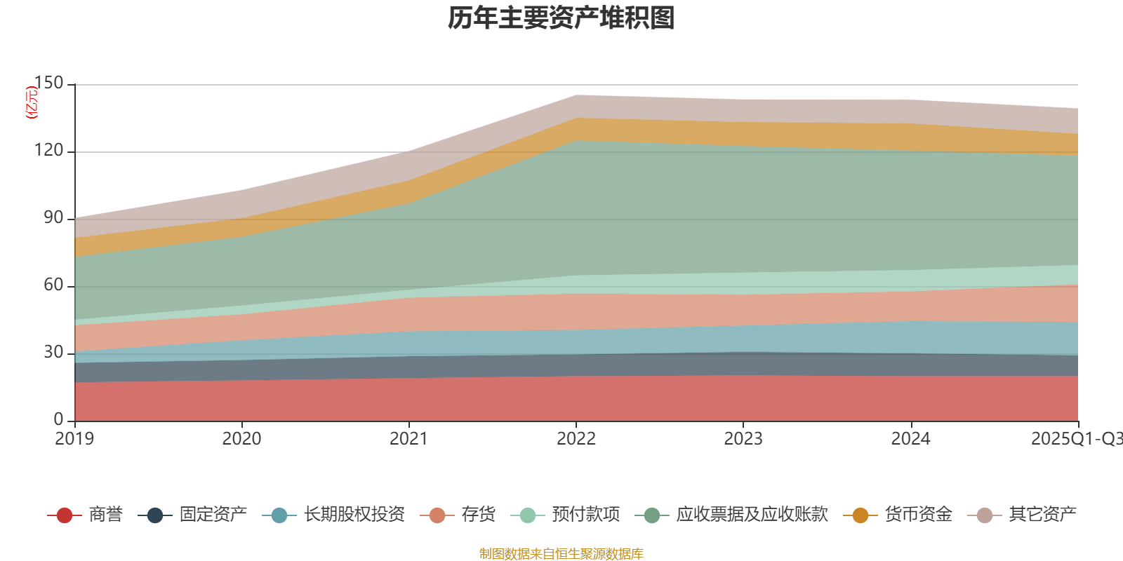 资产重大变化方面,截至2025年三季度末,公司存货较上年末增加26.99%,占公司总资产比重上升2.83个百分点;应收票据及应收账款较上年末减少8.47%,占公司总资产比重下降2.2个百分点;货币资金较上年末减少18.94%,占公司总资产比重下降1.41个百分点;长期股权投资较上年末增加2.78%,占公司总资产比重上升0.57个百分点。