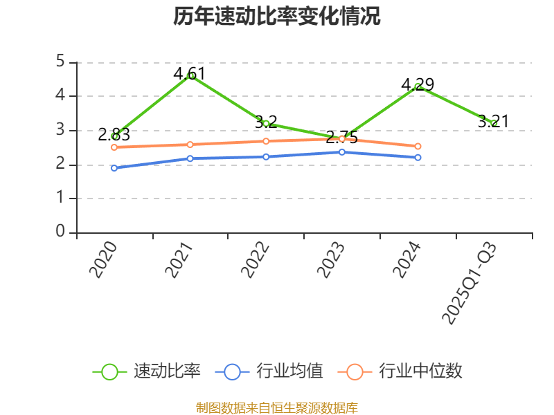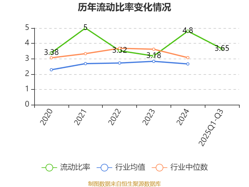 2025年前三季度,公司流动比率为3.65,速动比率为3.21。