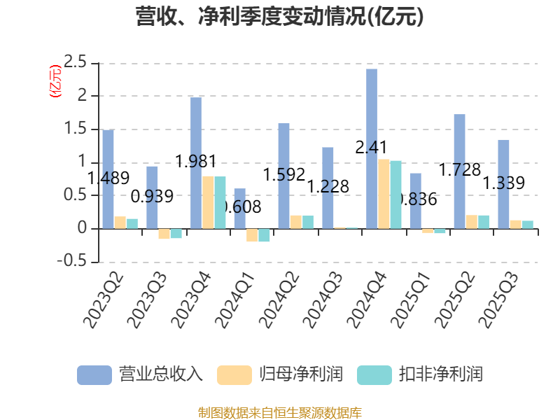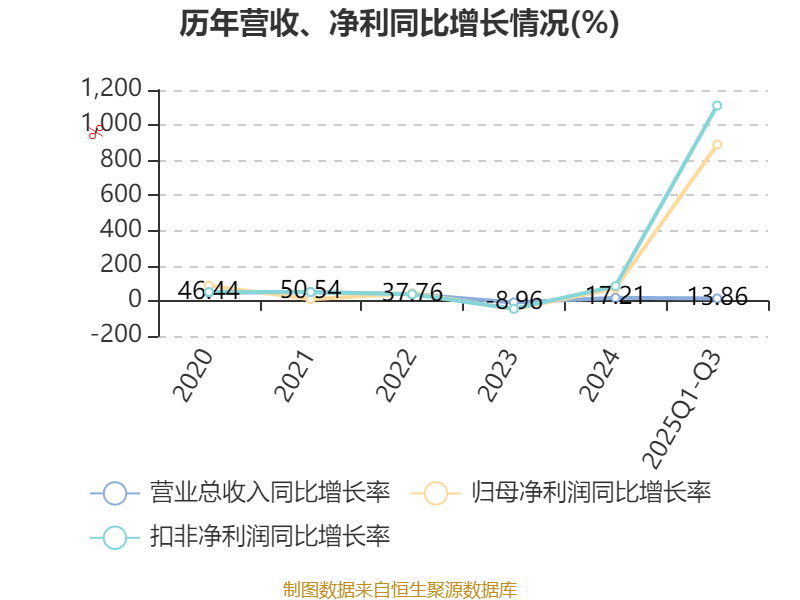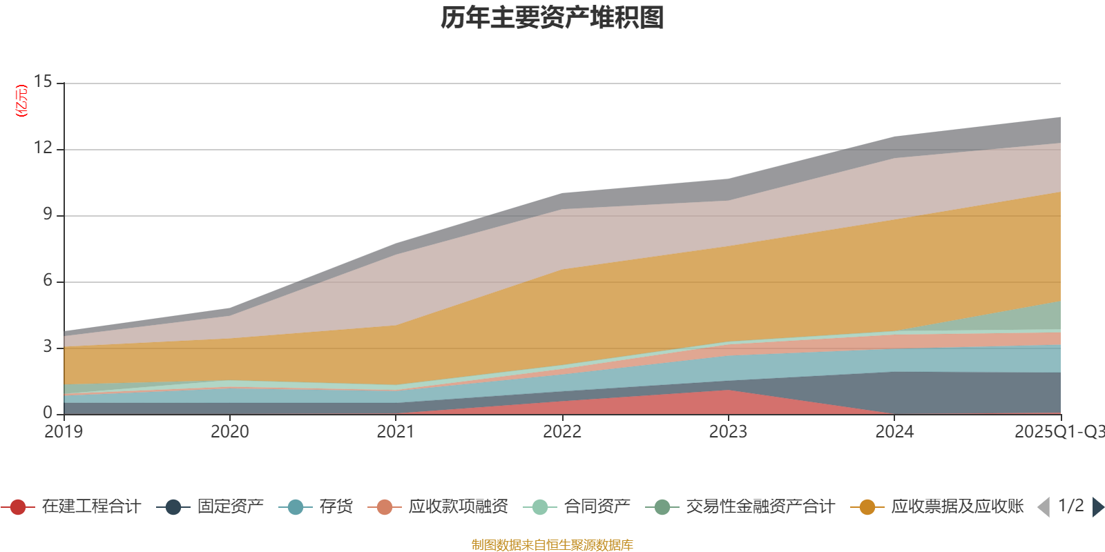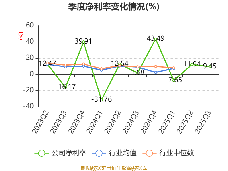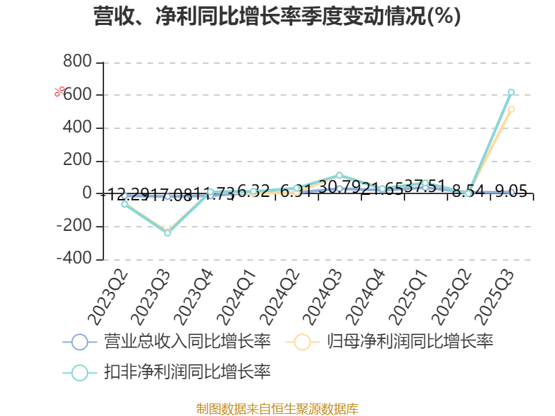 资产重大变化方面,截至2025年三季度末,公司交易性金融资产合计占公司总资产的9.54%,上年末为0;货币资金较上年末减少20.43%,占公司总资产比重下降5.69个百分点;应收票据及应收账款较上年末减少2.1%,占公司总资产比重下降3.43个百分点;固定资产较上年末减少5.07%,占公司总资产比重下降1.73个百分点。