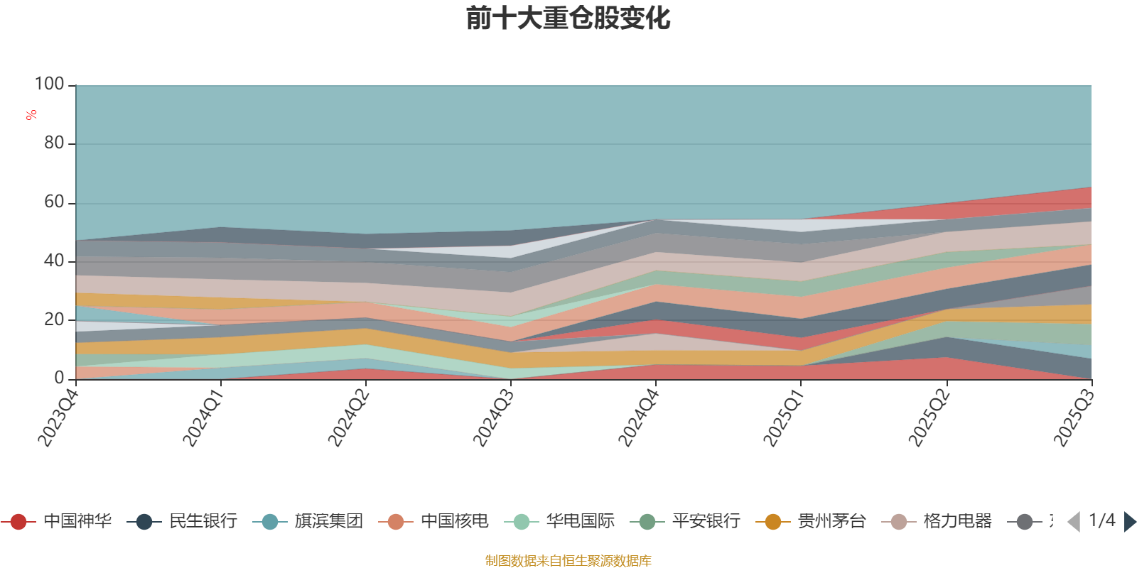 截至2025年三季度末,基金十大重仓股分别是中国平安、兴业银行、中国太保、平安银行、民生银行、光大银行、贵州茅台、东方财富、旗滨集团、中国建筑。