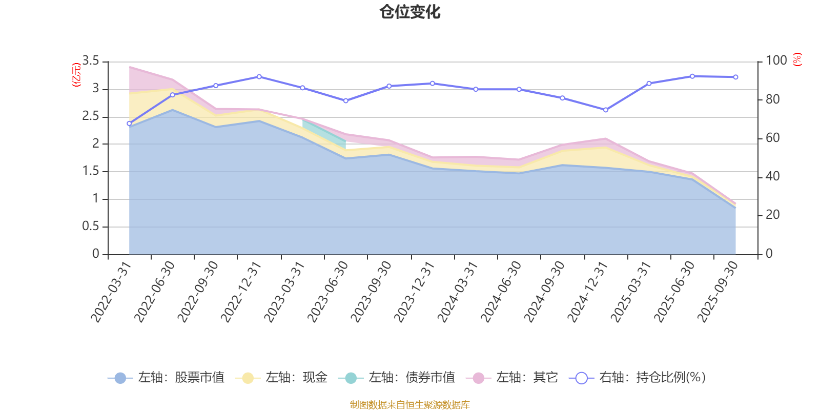 据定期报告数据统计,近三年平均股票仓位为86.19%,同类平均为85.66%。2025年上半年末基金达到92.36%的最高仓位,2022年一季度末最低,为67.89%。