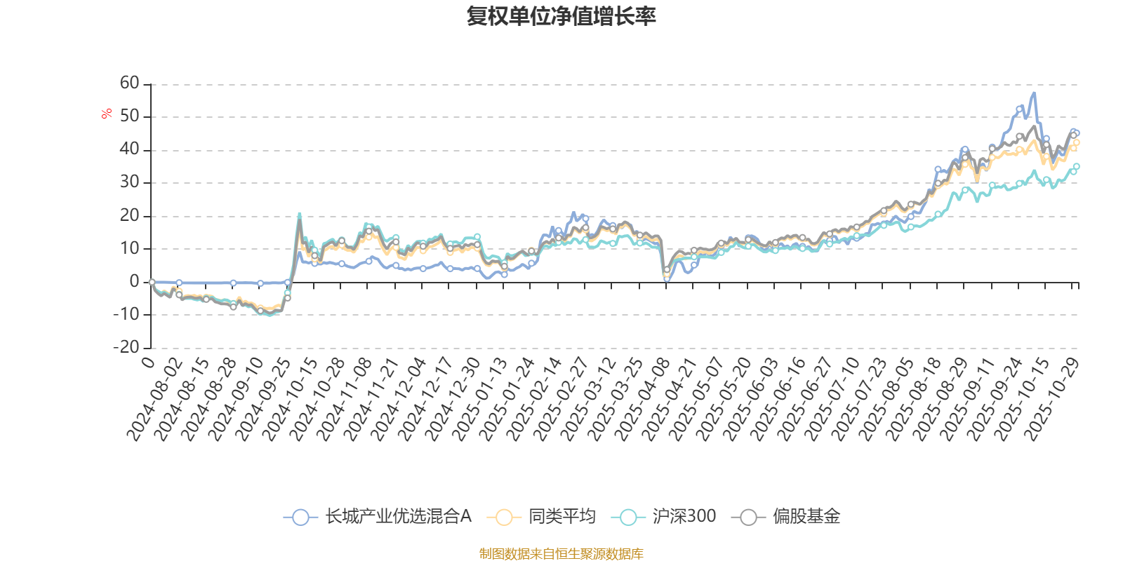 截至10月29日,长城产业优选混合A近三个月复权单位净值增长率为20.94%,位于同类可比基金177/689;近半年复权单位净值增长率为34.57%,位于同类可比基金246/688;近一年复权单位净值增长率为38.01%,位于同类可比基金193/657。