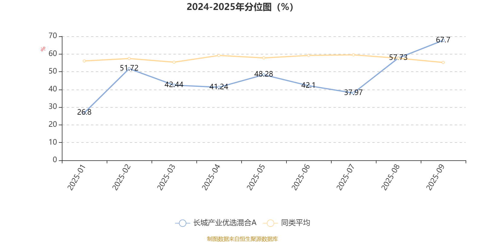 通过所选区间该基金净值增长率分位图,可以观察该基金与同类基金业绩比较情况。图为坐标原点到区间内某时点的净值增长率在同类基金中的分位数。