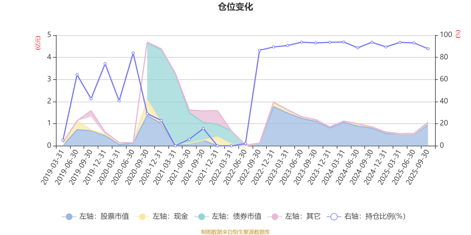 据定期报告数据统计,近三年平均股票仓位为91.73%,同类平均为72.35%。2024年一季度末基金达到93.92%的最高仓位,2021年一季度末最低,为0.07%。