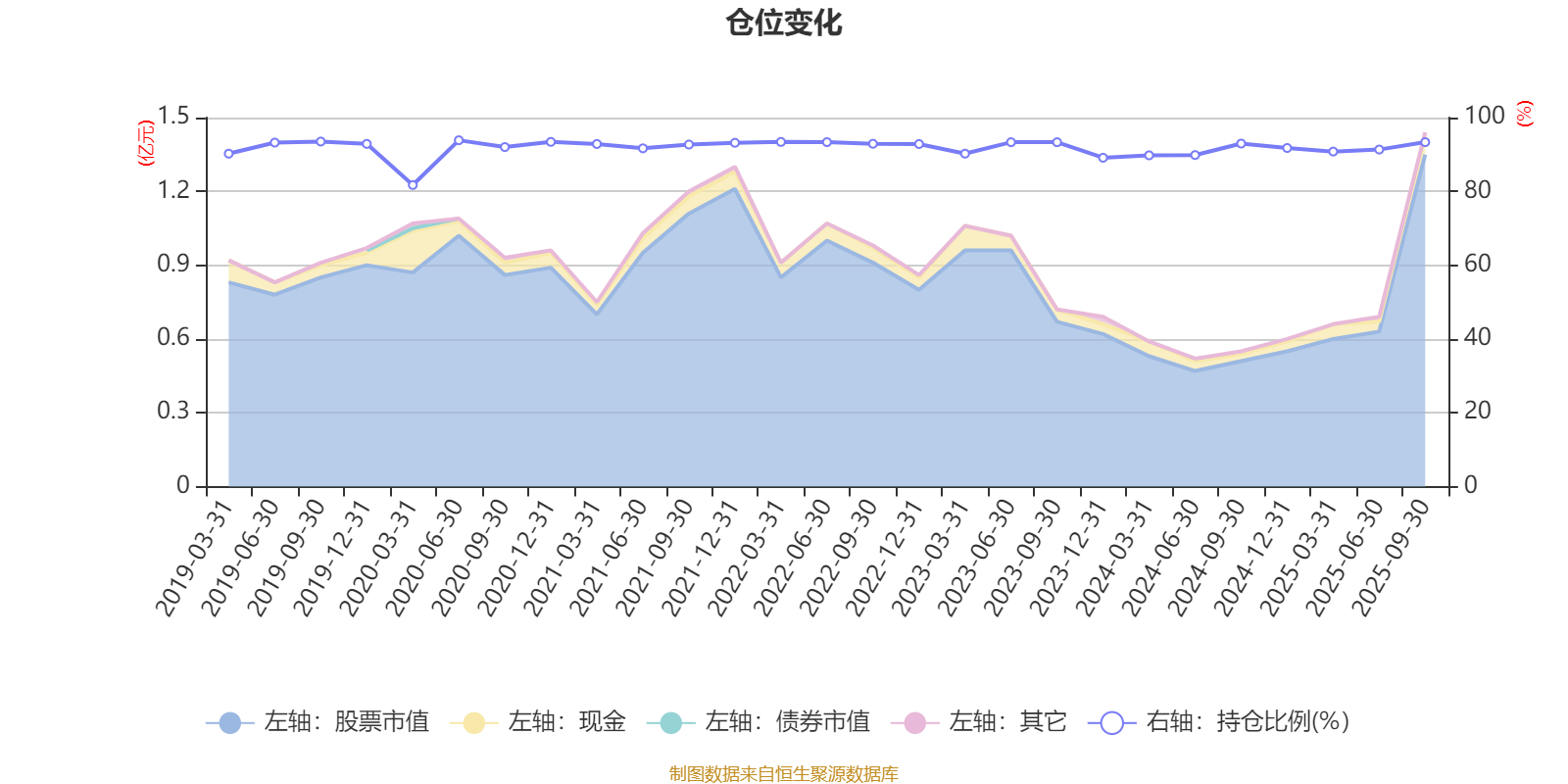 据定期报告数据统计,近三年平均股票仓位为91.56%,同类平均为72.35%。2020年上半年末基金达到93.86%的最高仓位,2020年一季度末最低,为81.73%。