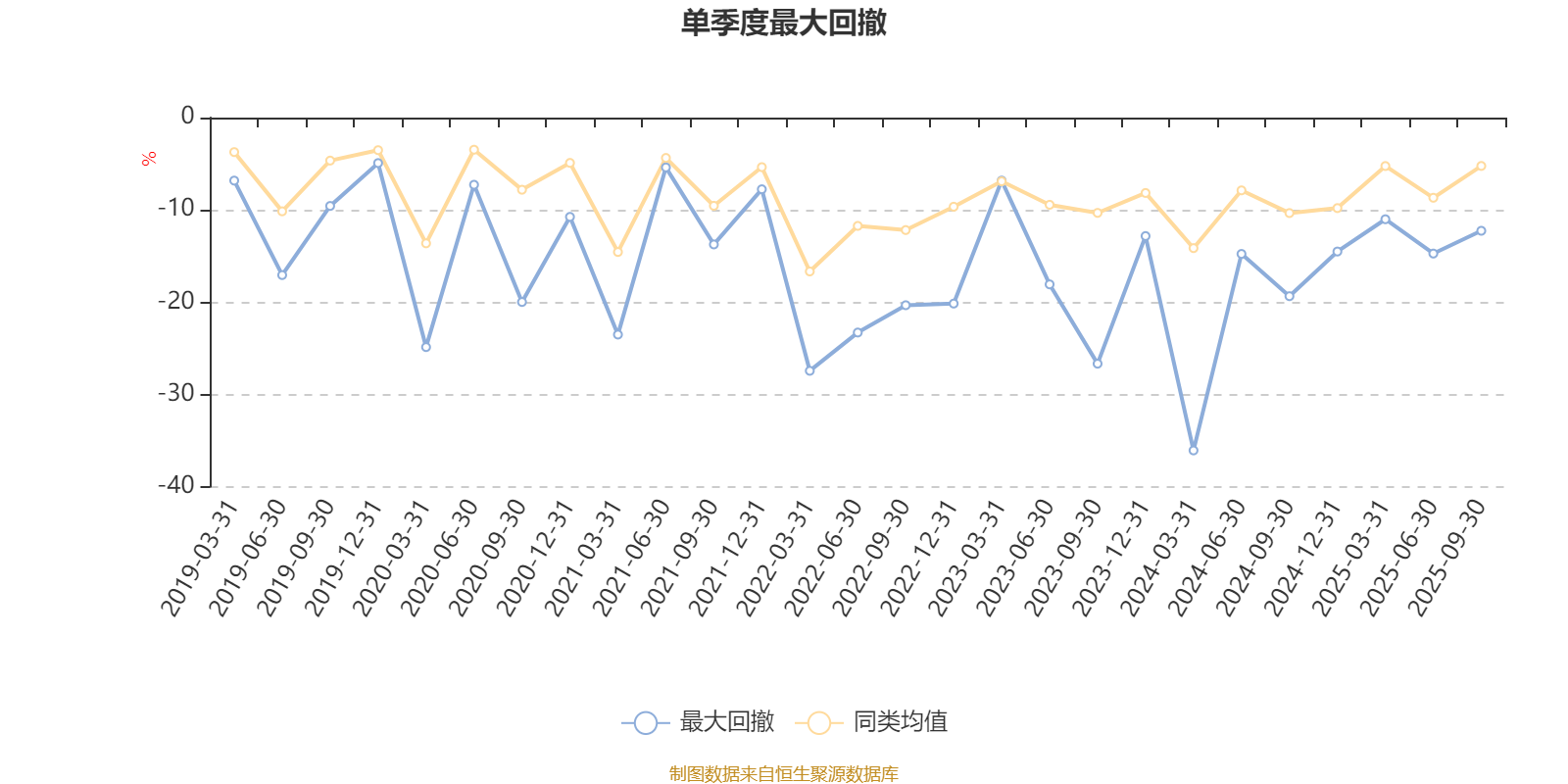 通过所选区间该基金净值增长率分位图,可以观察该基金与同类基金业绩比较情况。图为坐标原点到区间内某时点的净值增长率在同类基金中的分位数。