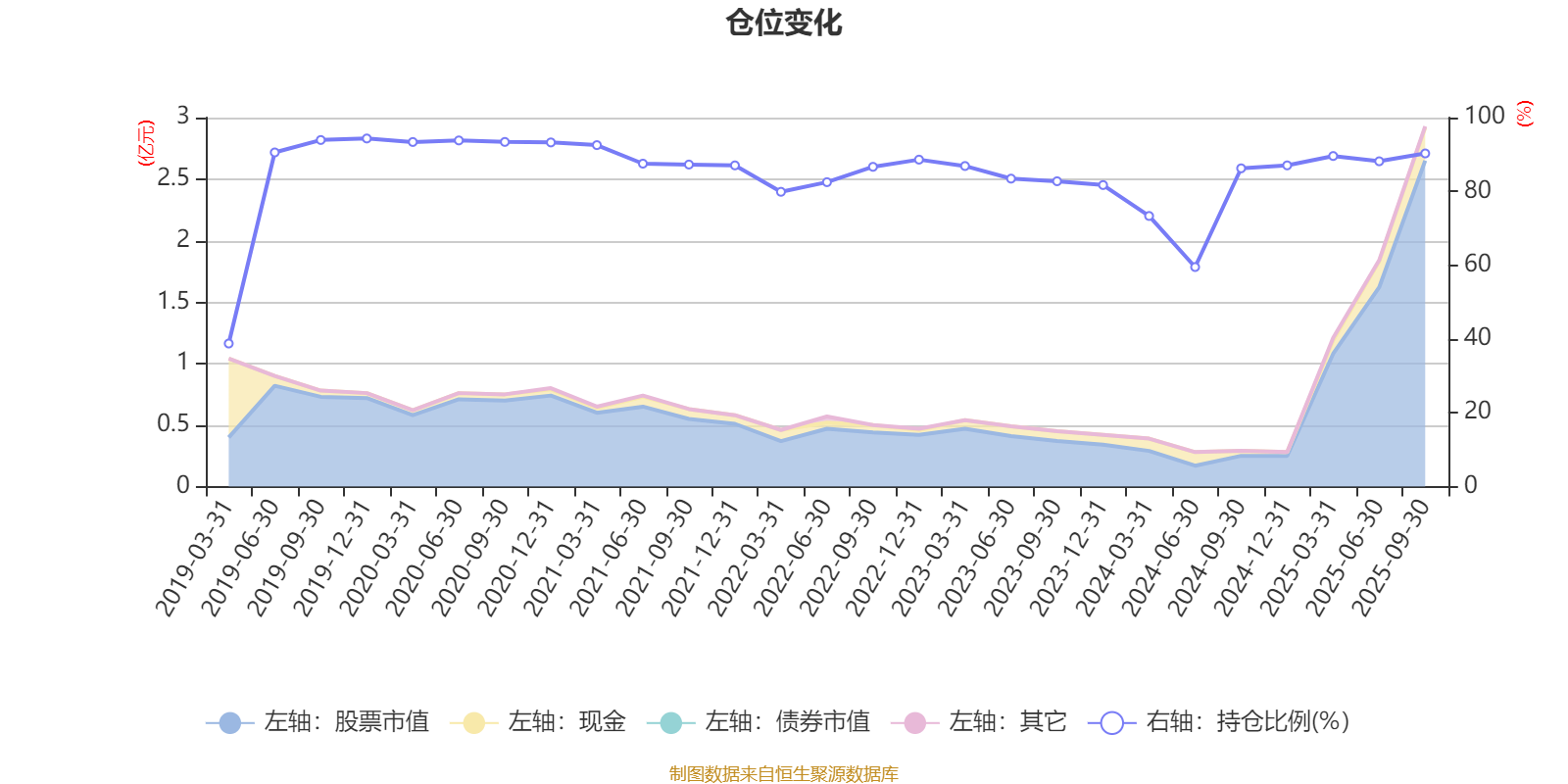 据定期报告数据统计,近三年平均股票仓位为83.13%,同类平均为72.35%。2019年末基金达到94.34%的最高仓位,2019年一季度末最低,为38.77%。