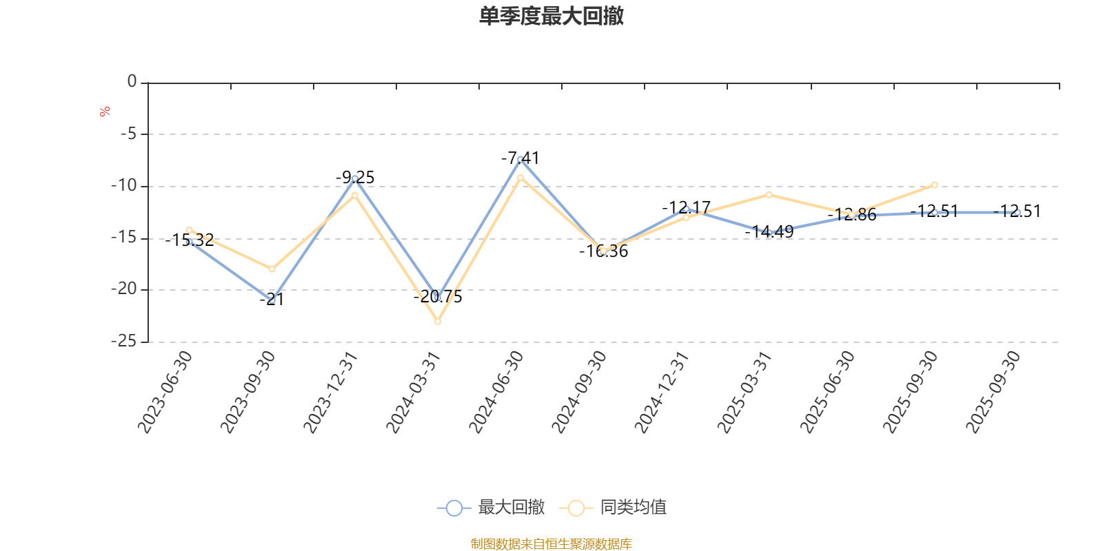 通过所选区间该基金净值增长率分位图,可以观察该基金与同类基金业绩比较情况。图为坐标原点到区间内某时点的净值增长率在同类基金中的分位数。