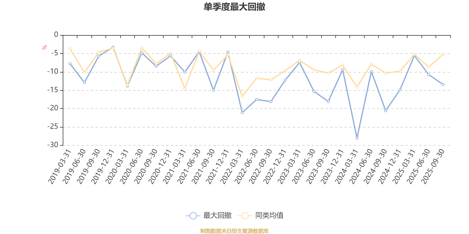 截至10月29日,基金近三年最大回撤为43.75%,同类可比基金排名1027/1274。单季度最大回撤出现在2024年一季度,为28.05%。