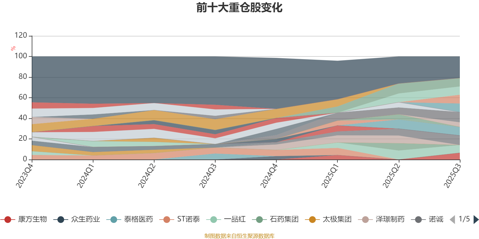 该基金持股集中度较高。截至2025年三季度末,基金十大重仓股分别是信达生物、诺诚健华、舒泰神、中国生物制药、三生制药、热景生物、益方生物、一品红、康方生物、昂利康。