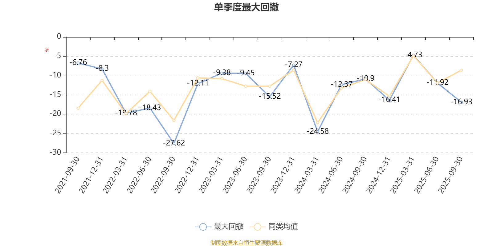 截至10月29日,基金近三年最大回撤为37.92%,同类可比基金排名32/75。单季度最大回撤出现在2022年三季度,为27.62%。