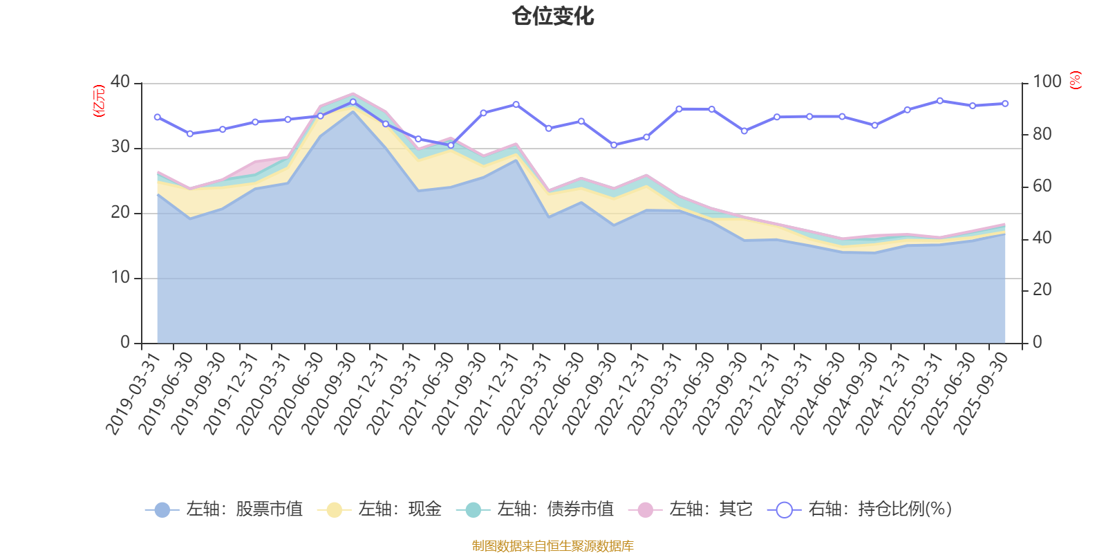 据定期报告数据统计,近三年平均股票仓位为87.64%,同类平均为87.62%。2025年一季度末基金达到93.17%的最高仓位,2021年上半年末最低,为76.02%。