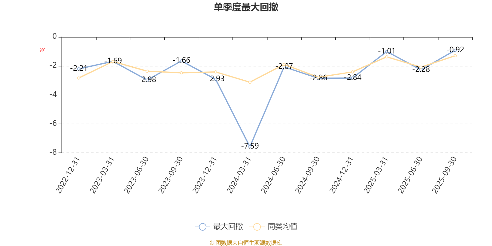 截至10月29日,基金近三年最大回撤为10.8%,同类可比基金排名421/534。单季度最大回撤出现在2024年一季度,为7.59%。