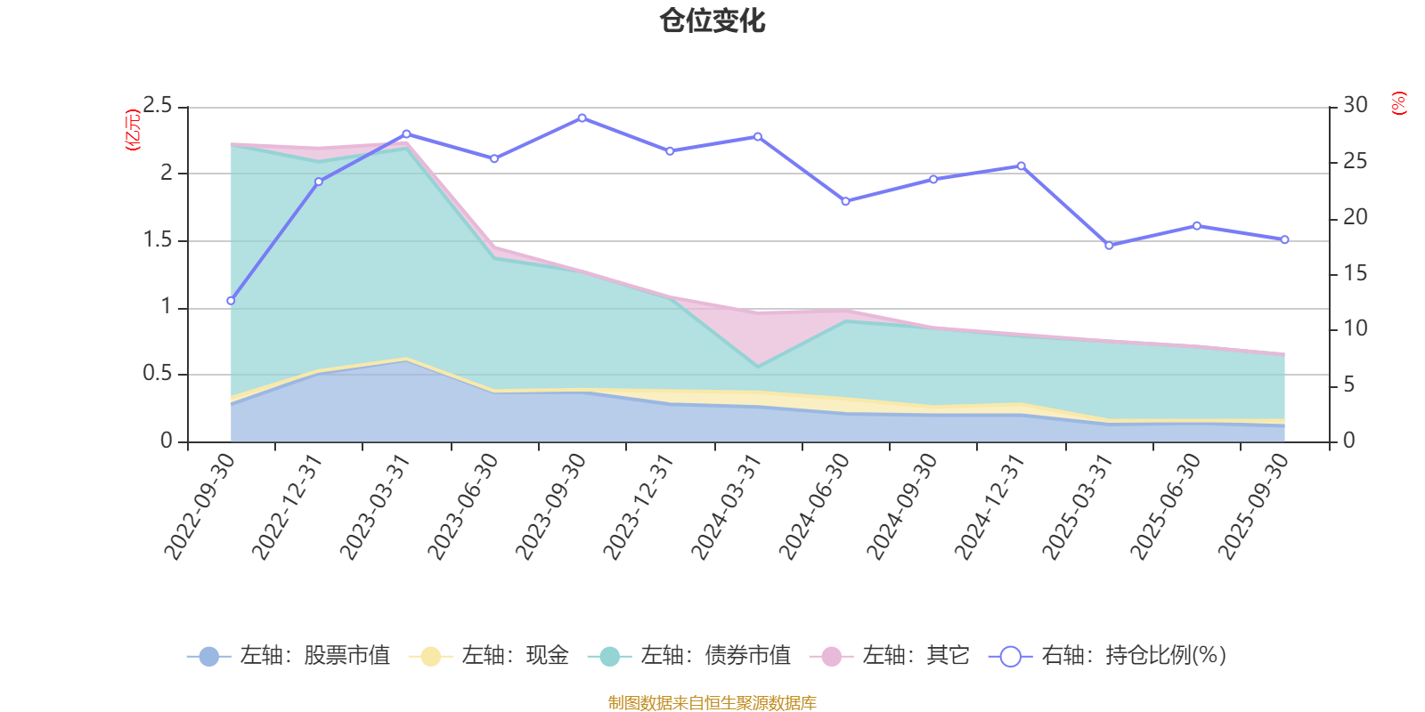 据定期报告数据统计,近三年平均股票仓位为23.62%,同类平均为19.14%。2023年三季度末基金达到29%的最高仓位,2022年三季度末最低,为12.64%。