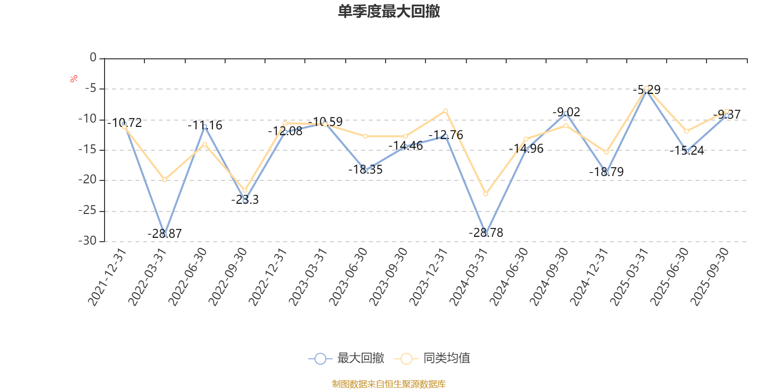 截至10月29日,基金近三年最大回撤为42.18%,同类可比基金排名49/75。单季度最大回撤出现在2022年一季度,为28.87%。
