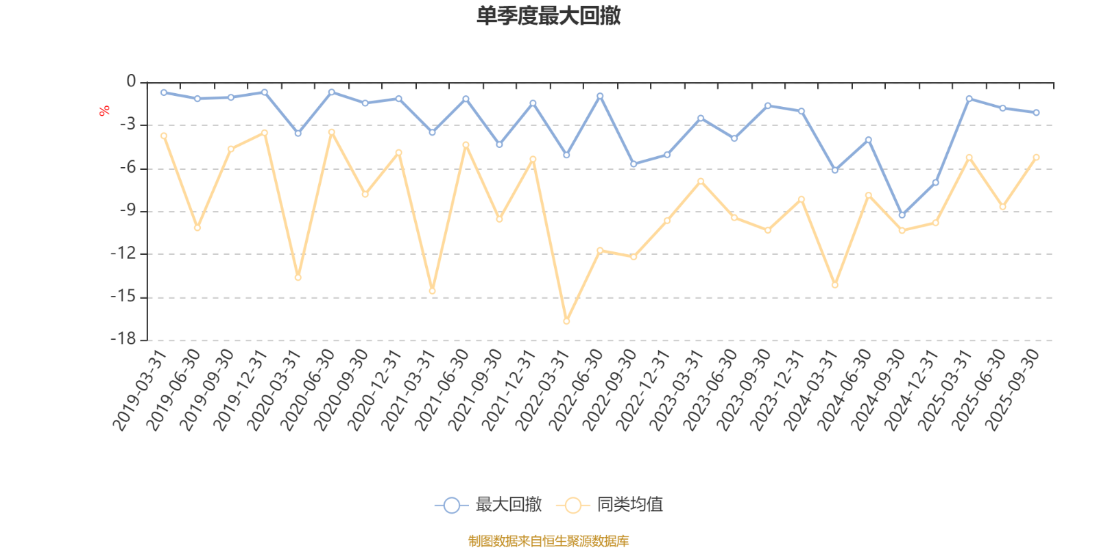 截至10月29日,基金近三年最大回撤为14.19%,同类可比基金排名184/1274。单季度最大回撤出现在2024年三季度,为9.27%。