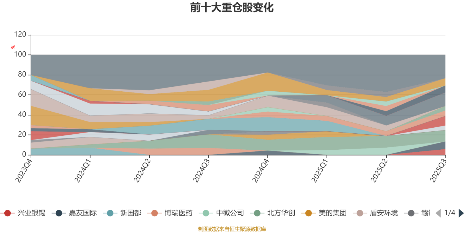 该基金持股集中度较高,近2年前十大重仓股集中度长期超过60%。截至2025年三季度末,基金十大重仓股分别是豪威集团、北方华创、东方财富、嘉友国际、诺普信、中矿资源、兴业银锡、中国海油、东睦股份、永兴材料。