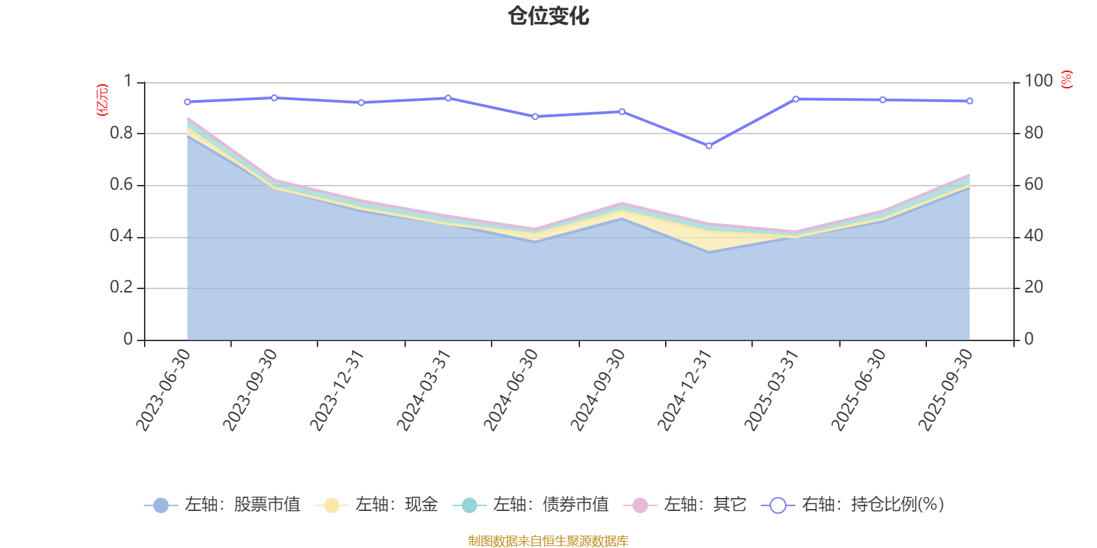 据定期报告数据统计,成立以来平均股票仓位为90.22%,同类平均为83.73%。2023年三季度末基金达到93.93%的最高仓位,2024年末最低,为75.36%。