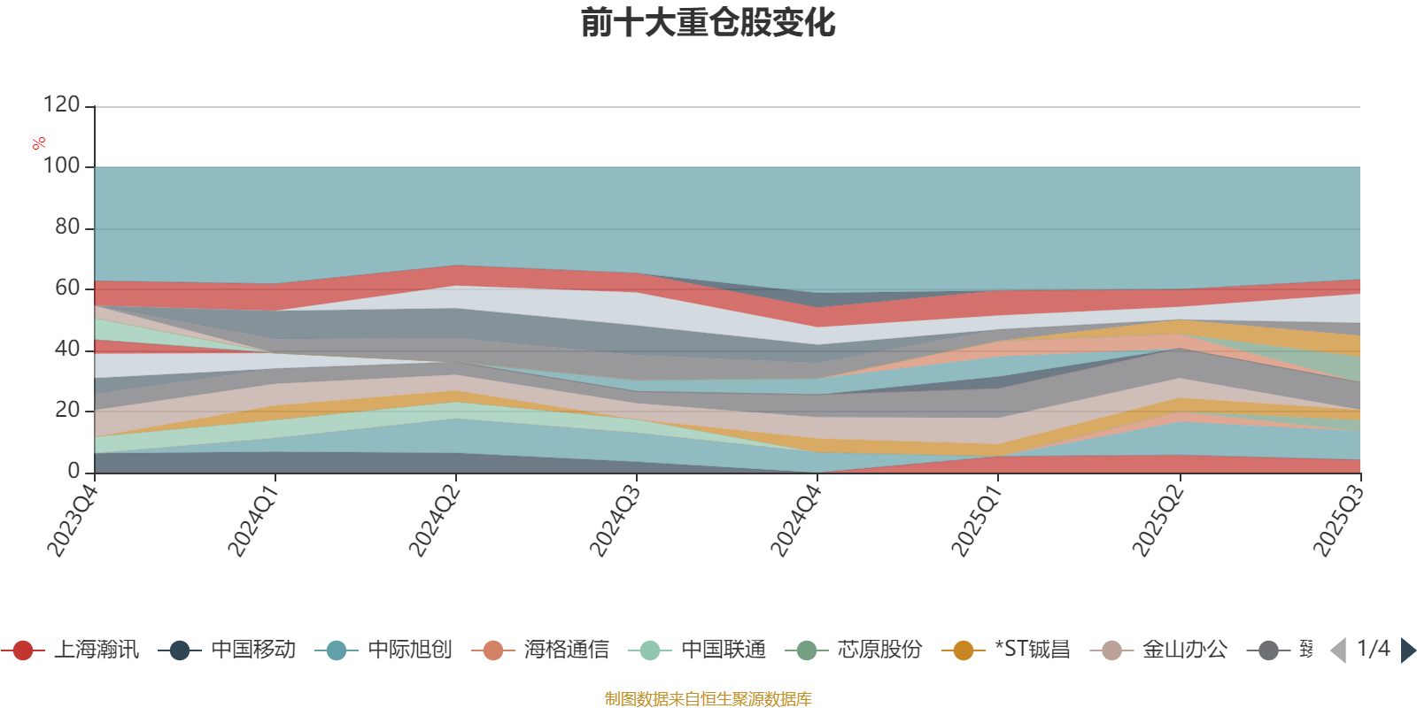 该基金持股集中度较高。截至2025年三季度末,基金十大重仓股分别是新易盛、中际旭创、臻镭科技、沪电股份、江淮汽车、中控技术、上海瀚讯、工业富联、芯原股份、*ST铖昌。