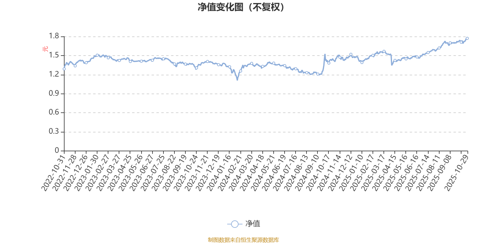 通过所选区间该基金净值增长率分位图,可以观察该基金与同类基金业绩比较情况。图为坐标原点到区间内某时点的净值增长率在同类基金中的分位数。