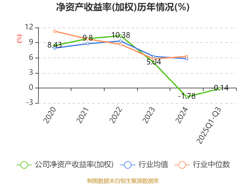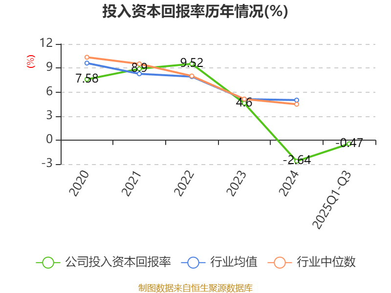 盈利能力方面, 2025年前三季度公司加权平均净资产收益率为-0.14%,同比上升0.47个百分点。公司2025年前三季度投入资本回报率为-0.47%,较上年同期上升0.61个百分点。