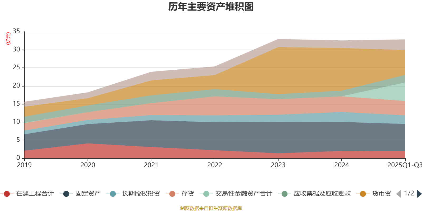 资产重大变化方面,截至2025年三季度末,公司交易性金融资产合计占公司总资产的15.62%,上年末为0;货币资金较上年末减少41.71%,占公司总资产比重下降15.31个百分点;其他非流动资产较上年末增加452.61%,占公司总资产比重上升2.02个百分点;固定资产较上年末减少6.28%,占公司总资产比重下降1.76个百分点。