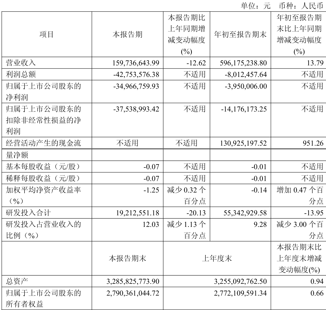 中证智能财讯康鹏科技(688602)10月31日披露2025年第三季度报告。前三季度公司实现营业总收入5.96亿元,同比增长13.79%;归母净利润亏损395万元,上年同期亏损1734.58万元;扣非净利润亏损1417.62万元,上年同期亏损5970.45万元;经营活动产生的现金流量净额为1.31亿元,同比增长951.26%;报告期内,康鹏科技基本每股收益为-0.01元,加权平均净资产收益率为-0.14%。