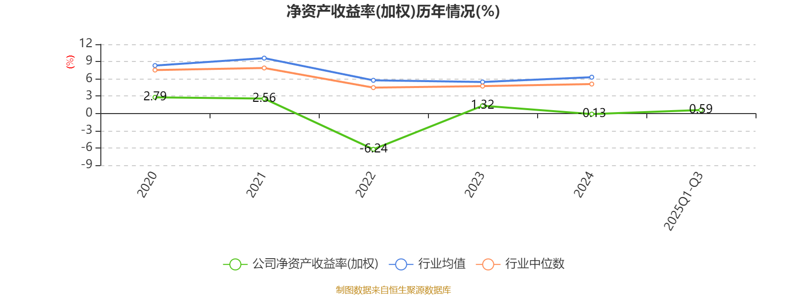 盈利能力方面, 2025年前三季度公司加权平均净资产收益率为0.59%,同比上升2.89个百分点。