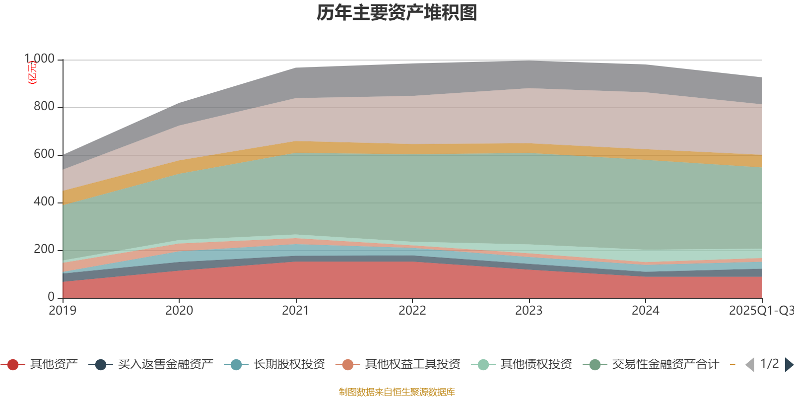 资产重大变化方面,截至2025年三季度末,公司交易性金融资产合计较上年末减少9.45%,占公司总资产比重下降1.6个百分点;货币资金较上年末减少11.43%,占公司总资产比重下降1.53个百分点;买入返售金融资产较上年末增加60.46%,占公司总资产比重上升1.51个百分点;融出资金较上年末增加18.29%,占公司总资产比重上升1.15个百分点。