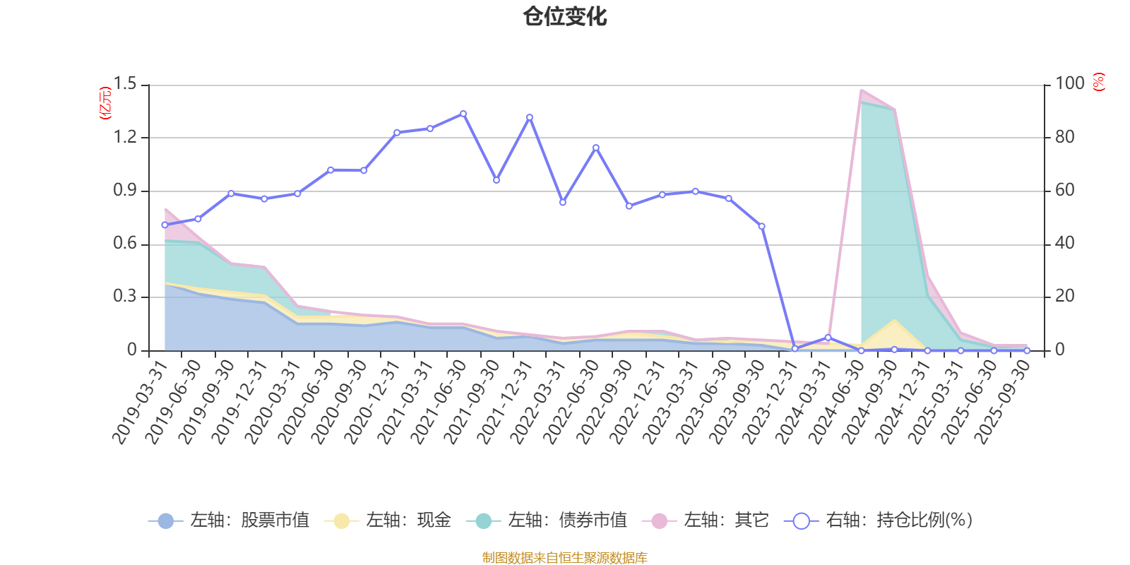 据定期报告数据统计,近三年平均股票仓位为19.06%,同类平均为46.43%。2021年上半年末基金达到89.12%的最高仓位,2024年三季度末最低,为0.43%。