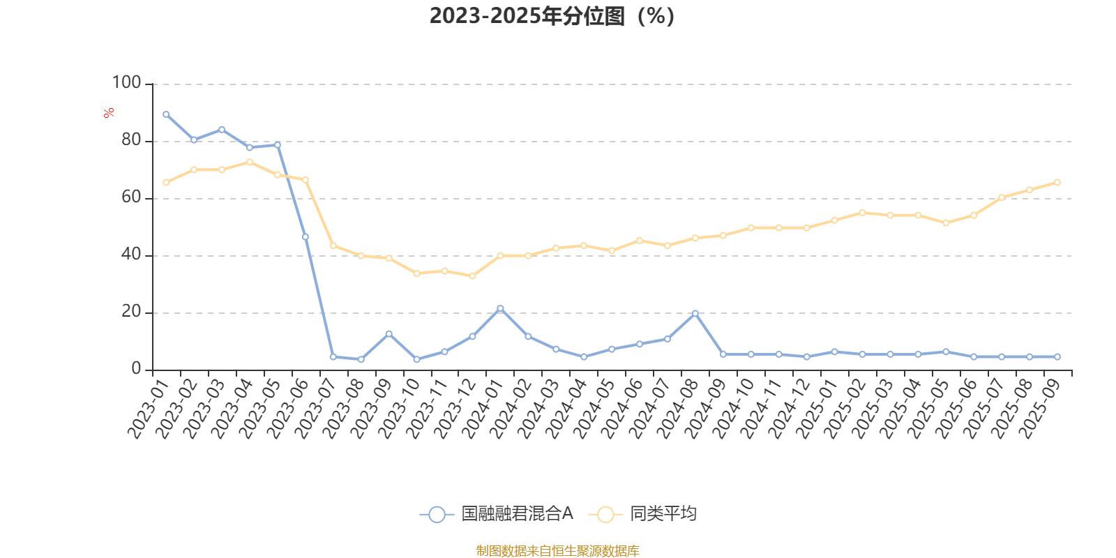 通过所选区间该基金净值增长率分位图,可以观察该基金与同类基金业绩比较情况。图为坐标原点到区间内某时点的净值增长率在同类基金中的分位数。