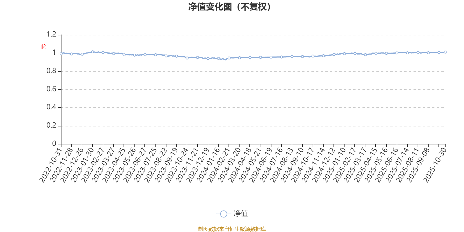 该基金属于偏债混合型基金。截至10月30日,单位净值为1.01元。基金经理是李铭一,目前管理的10只基金近一年均为正收益。其中,截至10月30日,国泰睿元一年定期开放债券发起式近一年复权单位净值增长率最高,达7.93%;国泰惠盈纯债债券A最低,为1.42%。