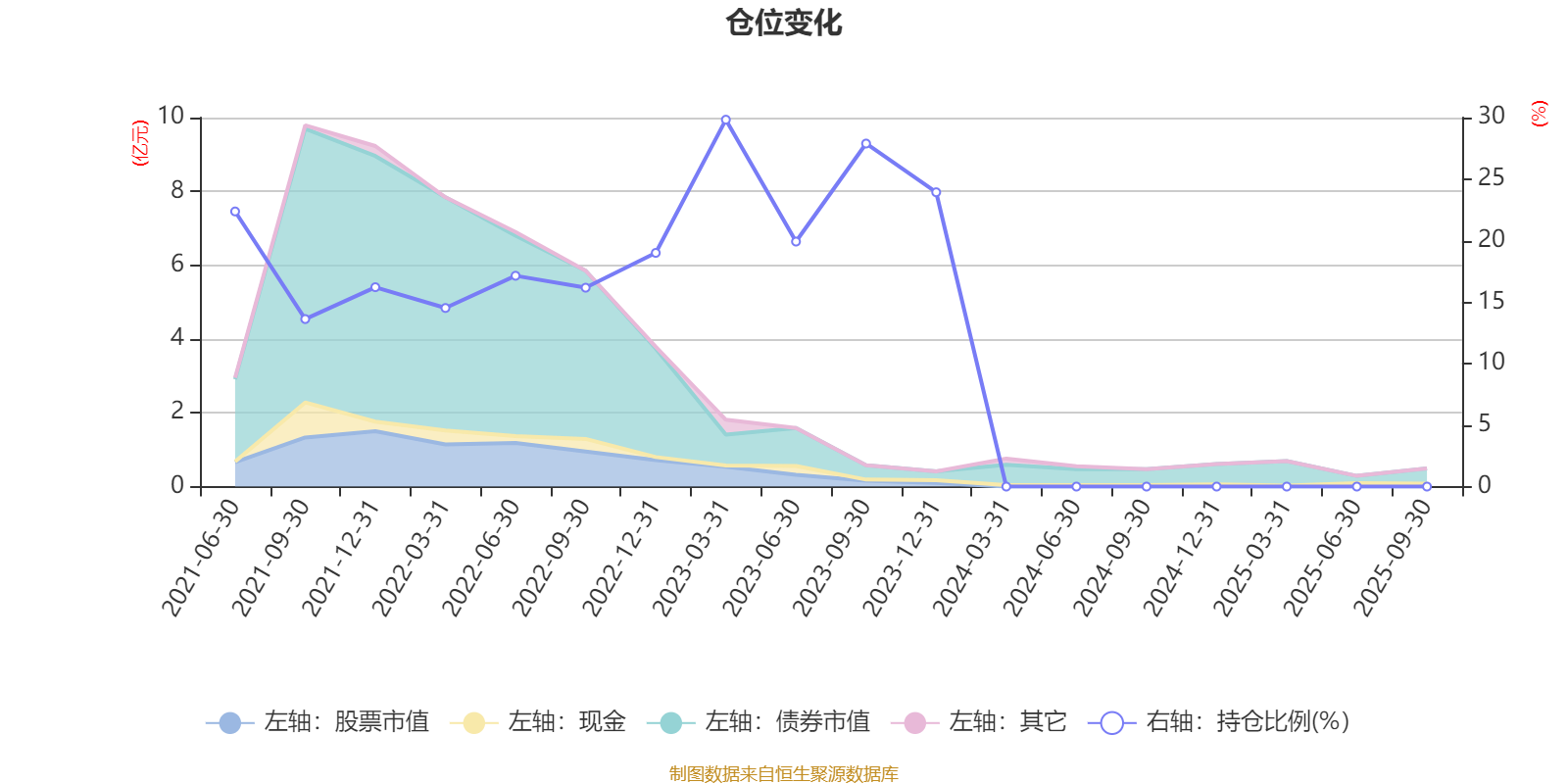 据定期报告数据统计,近三年平均股票仓位为10.05%,同类平均为19.19%。2023年一季度末基金达到29.83%的最高仓位,2021年三季度末最低,为13.62%。