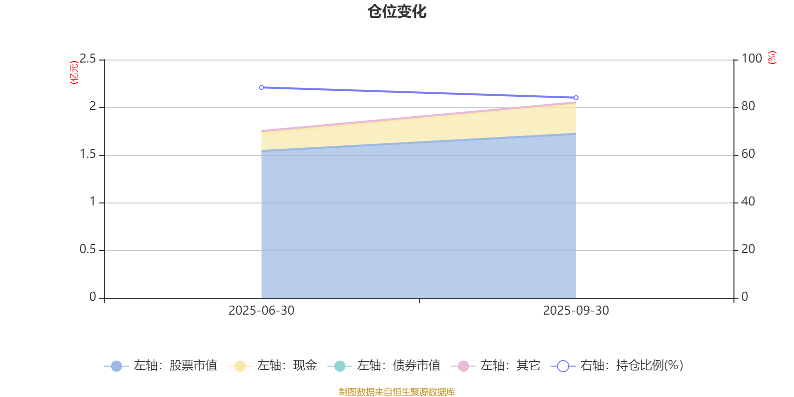 据定期报告数据统计,成立以来平均股票仓位为86.15%,同类平均为83.73%。2025年上半年末基金达到88.29%的最高仓位,2025年三季度末最低,为84.01%。