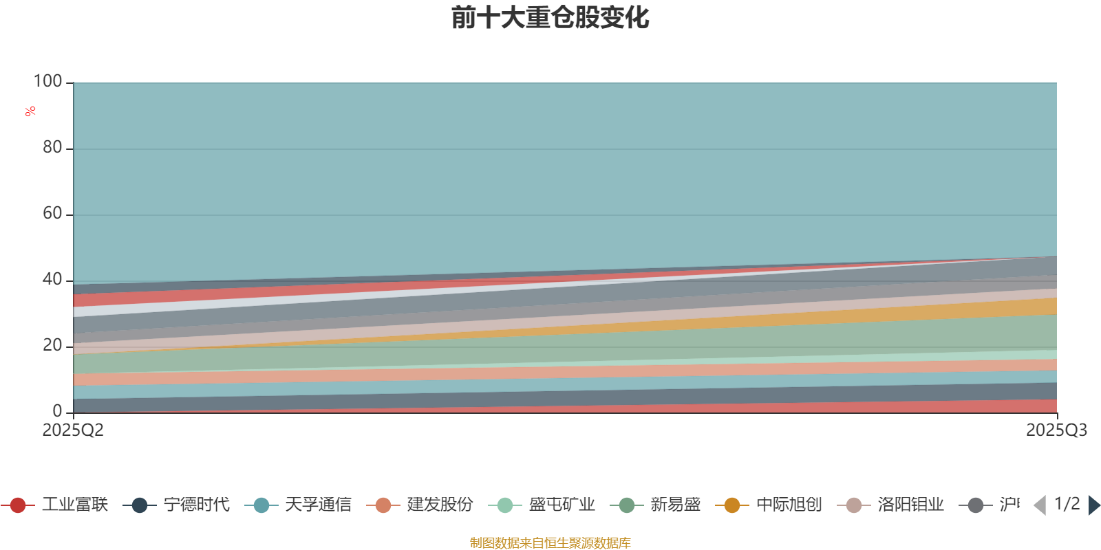 截至2025年三季度末,基金十大重仓股分别是新易盛、紫金矿业、宁德时代、中际旭创、沪电股份、工业富联、天孚通信、建发股份、洛阳钼业、盛屯矿业。