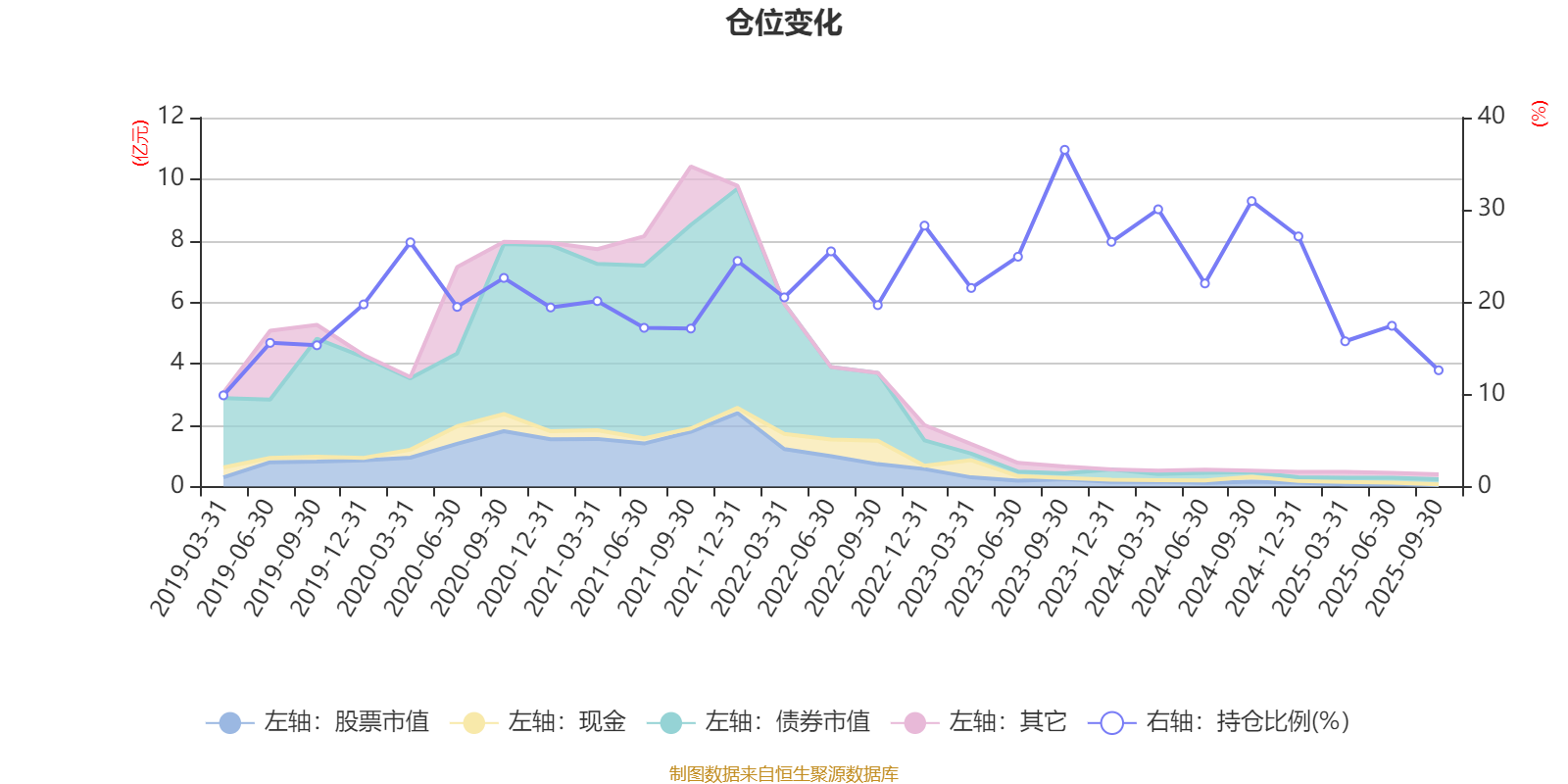 据定期报告数据统计,近三年平均股票仓位为24.48%,同类平均为72.35%。2023年三季度末基金达到36.51%的最高仓位,2019年一季度末最低,为9.89%。