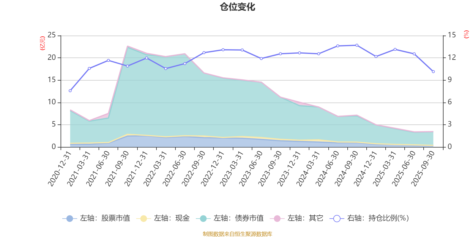 据定期报告数据统计,近三年平均股票仓位为12.6%,同类平均为19.14%。2024年三季度末基金达到13.7%的最高仓位,2020年末最低,为7.58%。