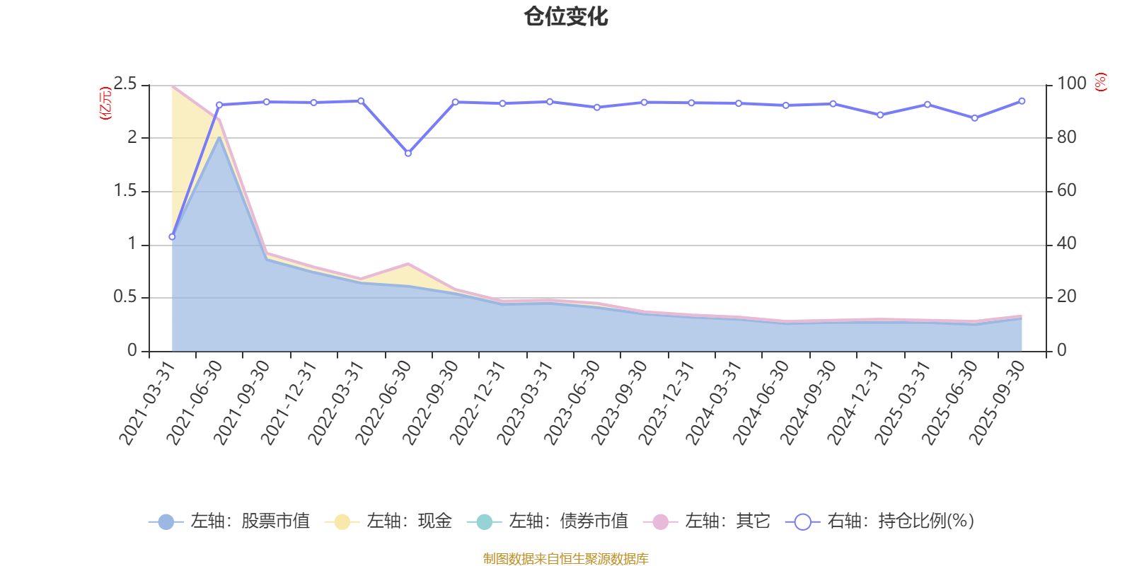 据定期报告数据统计,近三年平均股票仓位为92.19%,同类平均为88.23%。2022年一季度末基金达到93.99%的最高仓位,2021年一季度末最低,为42.99%。
