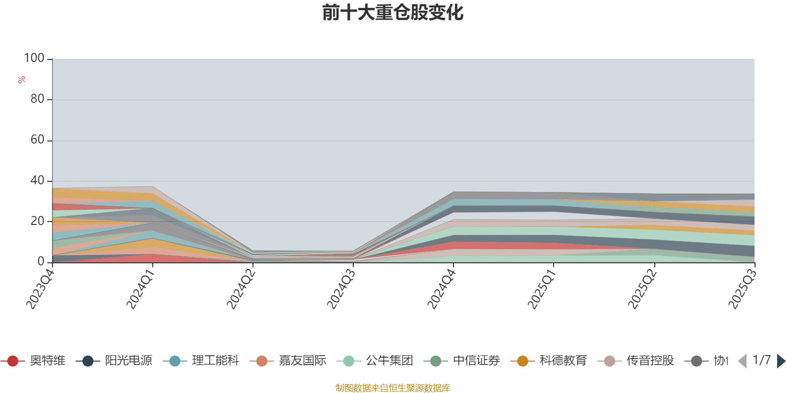 截至2025年三季度末,基金十大重仓股分别是紫金矿业、北方华创、宁德时代、海光信息、中国平安、海康威视、恒瑞医药、中信证券、贵州茅台、中国重汽。