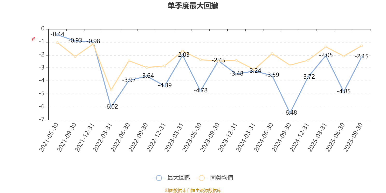 截至10月27日,基金近三年最大回撤为8.6%,同类可比基金排名368/535。单季度最大回撤出现在2024年三季度,为6.48%。